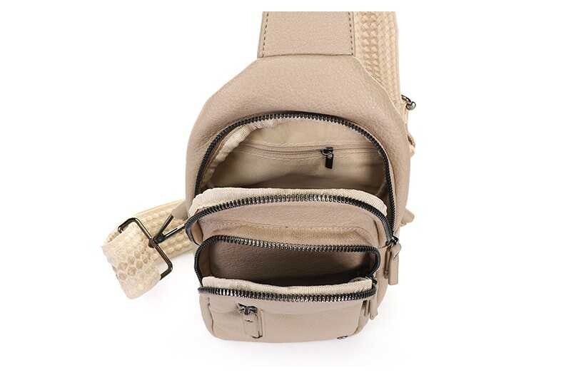 De tas is gemaakt van hoogwaardig PU materiaal (veganistisch leer). De crossbody heeft meerdere opbergvakken in verschillende maten. Uiteraard zijn deze allemaal afsluitbaar door middel van een rits. Zo kun je al jouw eigendommen veilig bewaren en er toch makkelijk bij.