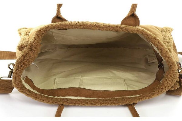 Deze ruime tas, afgewerkt met trendy teddy randjes, biedt zowel een chique uitstraling als praktische opbergruimte. Het grote hoofdvak sluit veilig af met een ritssluiting en biedt voldoende ruimte voor al je dagelijkse Essentials. Binnenin vind je drie kleinere vakjes voor extra organisatie, waarvan één voorzien is van een ritssluiting voor je waardevolle spullen. De tas is bovendien uitgerust met een verstelbare schouderband