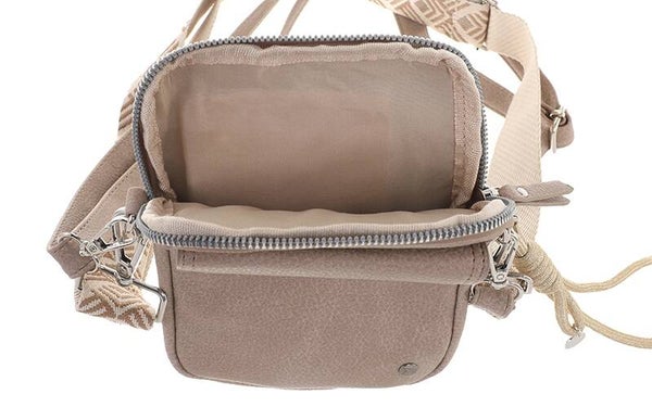De voorzijde is voorzien van een extra vak met drukknopsluiting – handig voor spullen waar je snel bij moet. Binnenin vind je een hoofdvak met ritssluiting en genoeg ruimte voor je telefoon, sleutels, pasjes of andere essentials. De brede geweven schouderband geeft dit tasje nét dat beetje extra stijl, en is uiteraard verstelbaar voor optimaal draagcomfort.